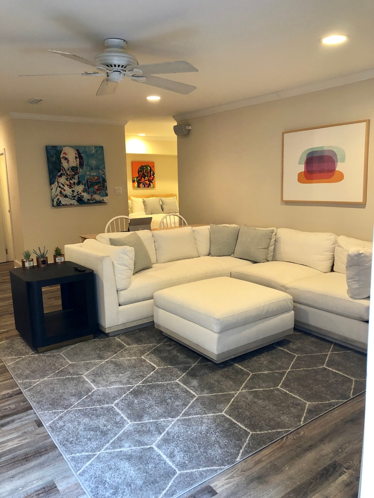 Pilnībā mēbelēts 2BR, 1BA pilnībā privāts pagraba mājoklis ar mājīgu dzīvojamo zonu, spēļu istabu ar pulu, šautriņām un Xbox, kā arī ugunskura vietu pagalmā. Iekļautas 2 īpašas autostāvvietas. Aprīkojums: Viedtelevīzija un Netflix Kafijas automāts, mikroviļņu krāsns, tosteris un karstā gaisa friteris Mini ledusskapis, mūzikas sistēma, gludeklis un gludināmais dēlis Piezīme: lūdzu, ņemiet vērā, ka šajā mājoklī nav virtuves. Piezīme: tas ir pilnībā privāts mājoklis ar atsevišķu ieeju un izeju.