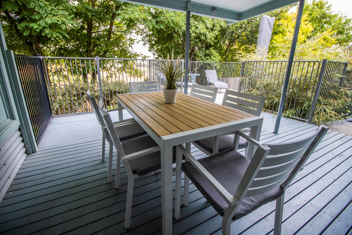 Discover an architecturally designed Tiny Eco House, steps away from Victor Harbor, Pt Elliot, and nearby beaches. Luxurious interiors, modern amenities, a projector, and an outdoor bathtub await. Nestled on a scenic hillside with stunning views of Hindmarsh River and McCracken Hill, this property features a beautiful garden with meandering stairways and paths leading to a top deck for your perfect retreat