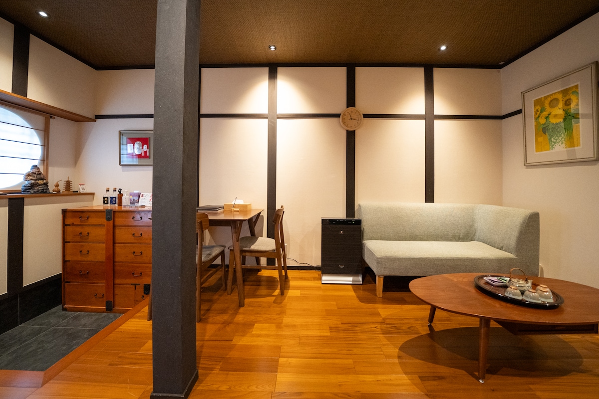 Hoshiya Shingbo atrodas Arashiyama rajonā un atrodas ļoti ērtā vietā.Līdz Togetsu tiltam ir 2 minūšu gājiens.Tā ir tradicionāla veselas mājas īres rindu māja, un mēs piedāvājam greznu telpu 80 m ² platībā.2022. gadā tā ir pilnībā atjaunota, un tajā tiek izmantotas augstākās klases mēbeles un aprīkojums.Divstāvu divistabu, divu vannu dizains pilnībā atbildīs jūsu ģimenes vai grupas izmitināšanas vajadzībām.Tā ir ideāla vieta, kur sajust Kioto kultūru un izbaudīt skaisto Arašijamas ainavu. Bezmaksas autostāvvieta (1) Wi-Fi ir pieejams bez maksas. Plašs: var uzņemt līdz 8 personām Piekļuve Togetsu-bashi: 2 minūtes kājām Tenryu-ji templis: 8 minūšu gājiens Bambusa meža ceļš: 18 minūšu gājiens Arashiyama trolejbuss: 20 minūtes kājām Hankyu [Arashiyama] stacija: 5 minūšu gājiens Randen [Arashiyama] stacija: 9 minūtes kājām Kioto galvenā komerciālā zona [Kawaramachi]: 30 minūtes ar Hankyu vilcienu Transportation Hub Kioto stacija: 37 minūtes ar JR vilcienu