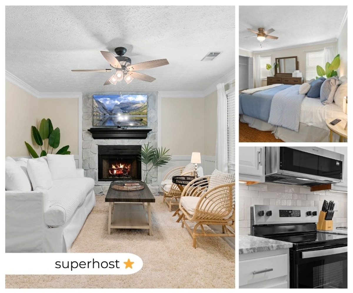 3BR/3BA rančo māja, VIEDTELEVĪZIJA katrā istabā, privāts pagalms, grils un ugunskura vieta. <1 jūdzes attālumā no Walmart, Lidl, Aldi 4 jūdzes līdz Vudstokas centram 15 jūdzes līdz PBR LakePoint 3,5 jūdzes līdz Hwy 575 Viss pārdomāti iekārtotais mājoklis būs jūsu rīcībā. Izbaudiet tikko atjaunoto mājokli ar daudz DABISKO APGAISMOJUMU, PILNĪBĀ APRĪKOTĀM VIRTUVĒM, ekranizētu VERANDU, STUDIJU ar daudzām SPĒLĒM. Nakšņojiet līdz 8 personām! Daudzi veikali un vietējie restorāni 2 jūdžu rādiusā no mājas.