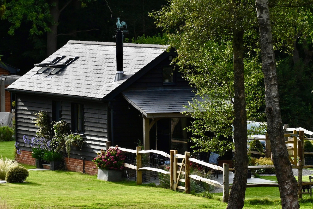 Apburoša nošķirta šķūņa māja, kas izgatavota no Francijas ozola, klusā privātā alejā, slēgtā lauku īpašumā. Grezns, pilnībā aprīkots īsai atpūtai vai ilgākai uzturēšanās. Gaisa kondicionētājs. Bezmaksas EV uzlādes punkts. Daudzi publiski gājēju celiņi tuvumā. Vietējie veikali atrodas tikai 10 minūšu gājiena attālumā. Gastro krogi, restorāni un neatkarīgi veikali viegli sasniedzami pastaigas attālumā. Īsa brauciena attālumā no M25 (J11). Ātrgaitas dzelzceļa satiksme uz Londonu no Vokingas. LGBTQ+ draudzīgs. Draudzīgs spāņis un Siāmas kaķis uz vietas.