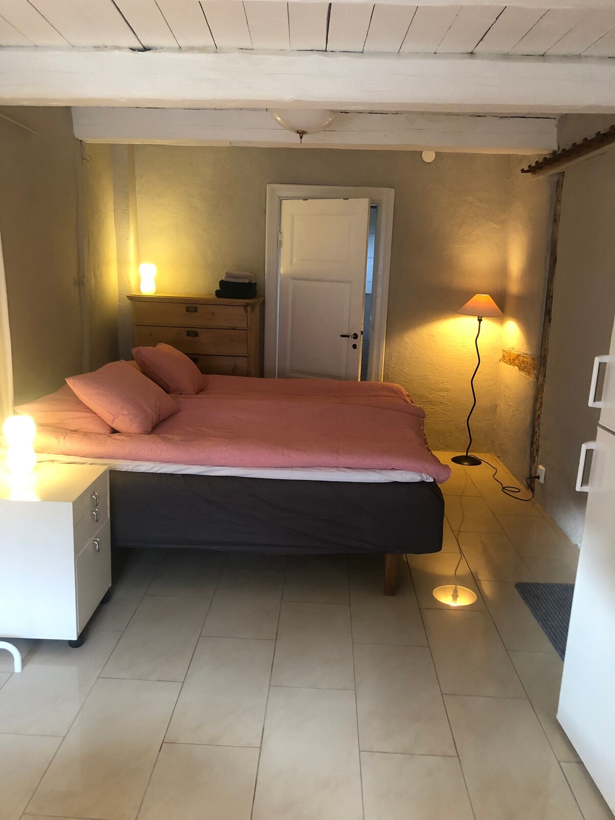 Mājīga, nesen renovēta viesu māja ar guļamistabas loftu. Atklāta plānojuma ar ēdiena gatavošanas iespējām un terasi. Guļamistabas bēniņos ir divas vienguļamās gultas. Viesistabā ir divas papildu gultas, no kurām viena var būt divvietīgs matracis uz grīdas. Ir ledusskapis ēdieniem un dzērieniem. Kafijas automāts, ūdens katls, mikroviļņu krāsns un divas plītiņas ļauj pagatavot savu ēdienu. Ir laipni gaidīti arī mīļdzīvnieki, un daudzi no mūsu viesiem ņem līdzi suni, kaķi un pat trušus. Apkārtnē ir jauki pastaigu celiņi.