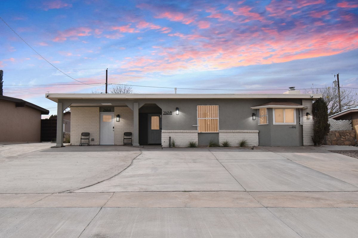 Lieliski atrodas Elpaso centrā! Atrodas netālu no Franklin Mountain range, Elpaso centra, lieliskiem restorāniem, sporta arēnām, vairākām slimnīcām, Fort Bliss armijas bāzi un daudz ko citu! Ērti netālu no vairākām automaģistrālēm, lai ātri piekļūtu apkārtējām vietām! - Tikko atjaunots - aprīkots ar jaunām modernām ierīcēm - Veļas mašīna un žāvētājs - Atdzesēts gaiss un apkure - Ērta divguļamā gulta (Queen) - guļamais dīvāns, lai uzņemtu trešo viesi vai bērnus -Pack n’ play pieejams par papildu maksu pēc pieprasījuma