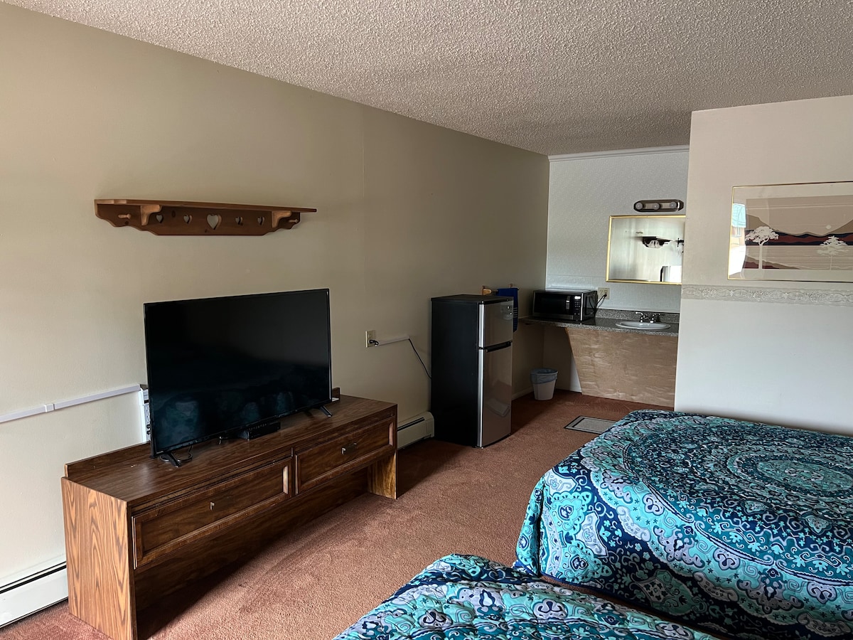 Dodieties uz mierpilno Zilā sēņa istabu – pārdomāti iekārtotu atpūtas vietu, kuras iedvesmas avots ir Mičiganas augsto priežu mežu skaistums. Šis numurs ir ideāli piemērots diviem, un tajā ir ērta King izmēra gulta, mājīga ēdamzona un viss nepieciešamais jūsu uzturēšanās laikā, tostarp kumode, skapis un Smart TV. Mūsdienu ērtības, piemēram, Frigidaire mini ledusskapis, mikroviļņu krāsns, Ninja kafijas automāts un Marshall skaļrunis, ir rokas stiepiena attālumā.