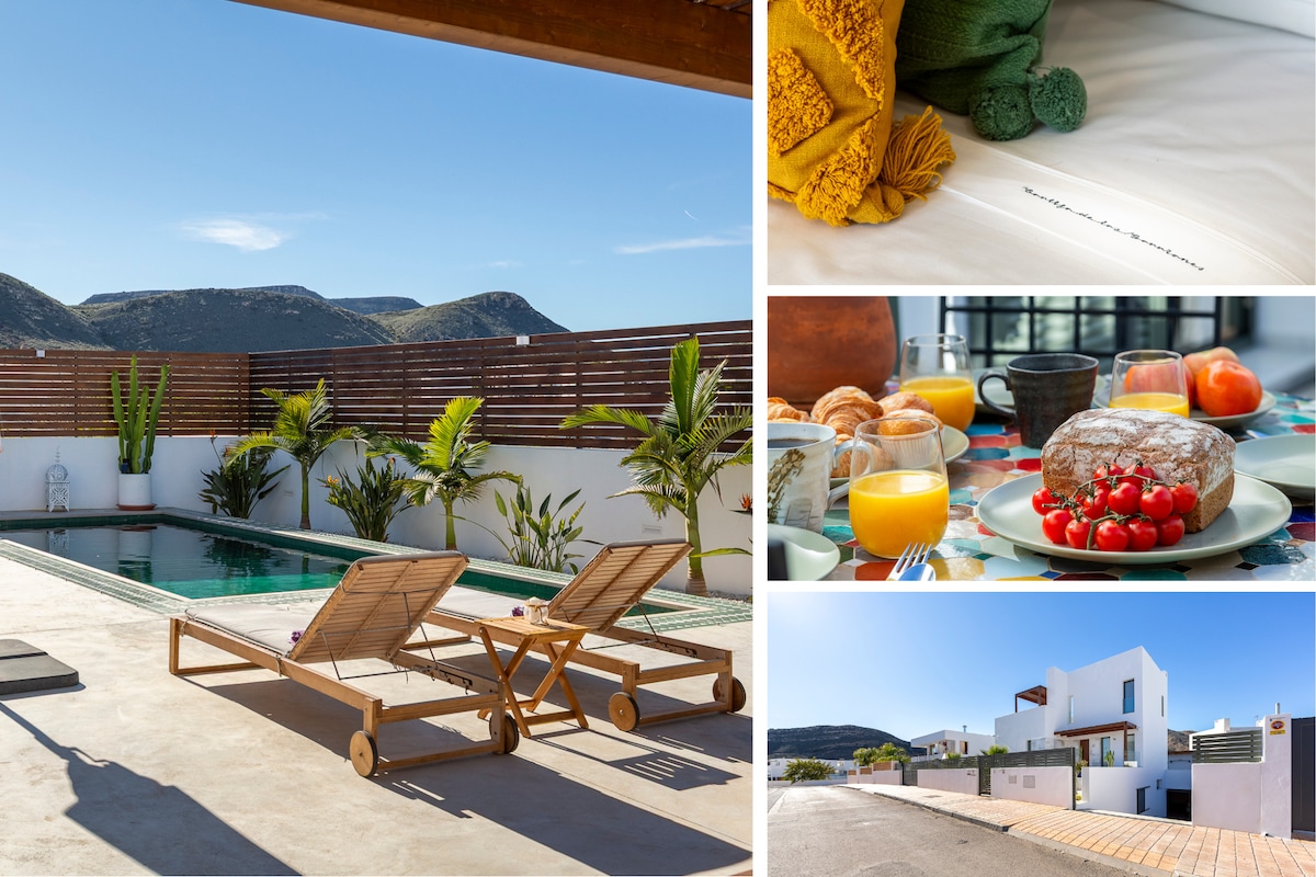 Atrodas mierīgā orchad rajonā tradicionāli amatnieku apkaimē, šī elegantā dizaina māja ar vieglām iekštelpām piedāvā ideālu atrašanās vietu un visas iespējas relaksējošam ģimenes ceļojumam pat pīķa sezonā. No īpašuma jūs varat viegli piekļūt visām Cabo de Gata dabas parka vietām ar pārsteidzošajām desertiskajām ainavām un pludmalēm, zivju ciematiem un dažādām apskates vietām, kas ir ideāli piemērotas pārgājienu cienītājiem, riteņbraucējiem un ūdens sporta entuziastiem.