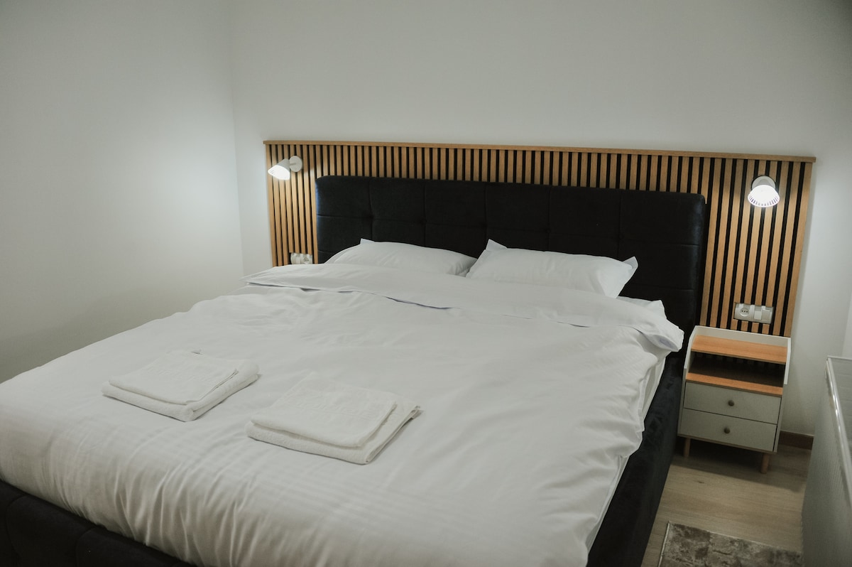 Dzīvoklis atrodas Hunedoarei centrā, netālu no gājēju alejas (viena minūte), 100 m attālumā no kultūras nama un aptuveni 1,5 km attālumā no Korvinas pils. Atrodoties pilsētas centrā, tās tuvumā ir daudz komerciālu, banku un ēdamistabas vienību. Dzīvoklis piedāvā viesiem guļamistabu ar laulāto gultu, viedtelevīziju, gaisa kondicionētāju, Wi-Fi, kā arī vannasistabu ar dušu, wc, bidē un virtuvi, kas aprīkota ar ledusskapi,plīti, veļas mašīnu, kafiju un tēju.
