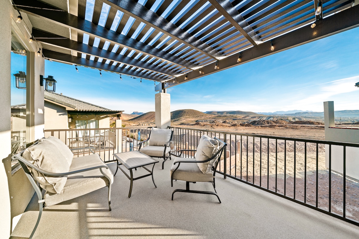 7 bedroom luxury townhome 30 minutes to Zion National Park! Pool heated all year! Private hot tub; pickle ball courts, spectacular views! Says 16, but sleeps 20+ Perfect for reunions. Right next to pool with slide, lazy river and clubhouse. 6 flat screen smart TVs, arcade games, Guardians of the Galaxy full size pinball machine. Ping Pong. 5 rooms have king beds. 2 w/ bunks sleeping 10 more. Wal Mart 5 mins away. Seats>20. Free NEMA 14-50 EV charging (bring your own cable)! Explore Greater Zion!