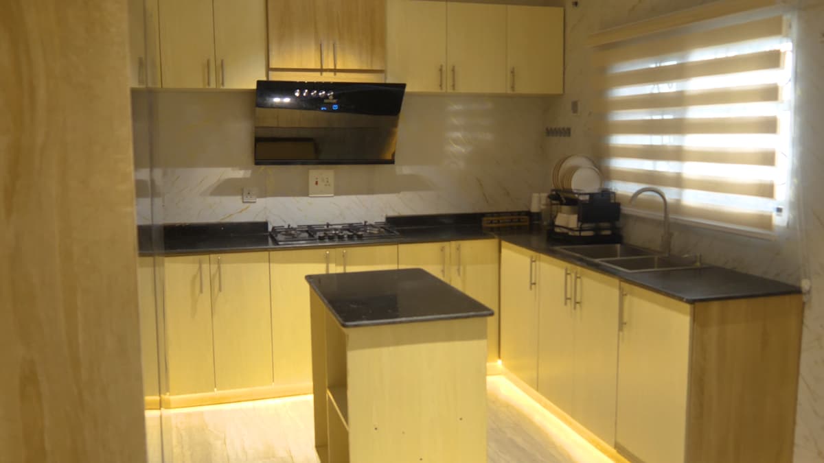 Atvediet visu ģimeni uz šo lielisko mājokli, kurā ir daudz vietas izklaidei. labi apsargāts īpašums, centralizēts, ļoti tuvu iepirkšanās centram un kinoteātrim, vienas stundas attālumā no Muritala starptautiskās lidostas Lagosas, saules enerģijas gaidstāves, Wi-Fi, DSTV, bezmaksas autostāvvietas utt.