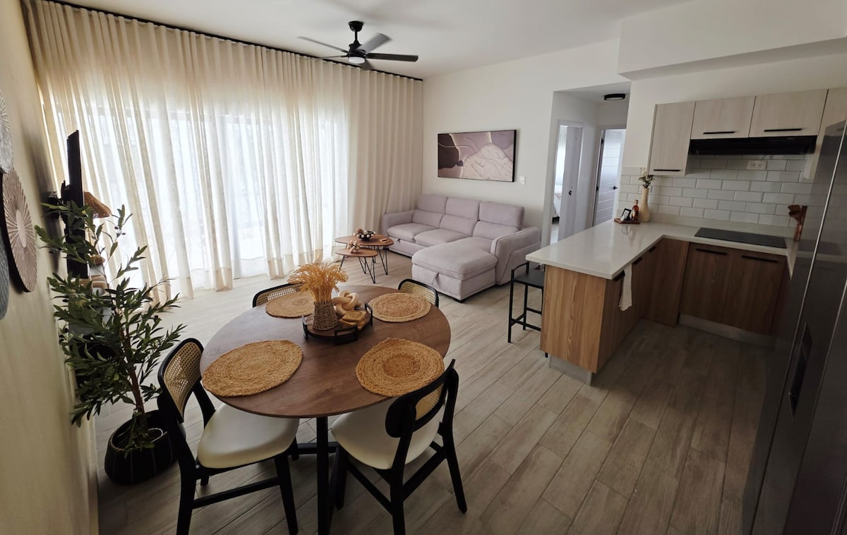 🌴 Bienvenido a tu refugio tropical en Punta Cana. Descubre un espacio pensado para que te relajes desde el primer instante. Este acogedor apartamento combina comodidad, estilo y privacidad, ideal para escapadas en pareja, en familia o con amigos. Desde la terraza hasta el patio trasero, cada rincón ha sido diseñado para que te relajes sin prisas. Afuera, la piscina y el gazebo te invitan a sumergirte en un entorno sereno, rodeado de calma tropical.