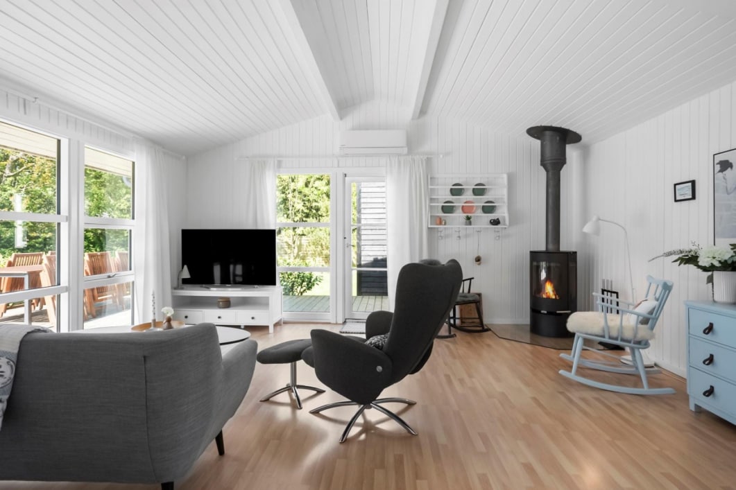 This cosy holiday home is peacefully located in scenic surroundings in Denmark’s southernmost holiday area. It features an energy-efficient heat pump and a wood-burning stove that adds warmth and comfort on chilly evenings. The well-equipped kitchen includes a fridge with freezer, convection oven, four ceramic hobs, microwave, coffee maker, Nespresso machine, toaster and dishwasher. Two smart TVs with Netflix and Prime Video – please use your own account.