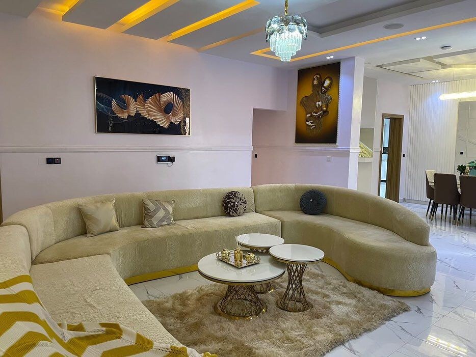 In this home, We’ve passionately created that perfect Indoor/Outdoor experience. It comes complete with a Pool, Gazebo, Gym, Laundry area and more. Inside is a living area with 65inch smart Tv and leather settees. Your bedrooms come ensuite with modern bathrooms and high water pressure. The kitchen comes with a heat extractor, and burners. Our WiFi is wired and Super fast. Power is 24/7. At your service is a Security guard and Porter.