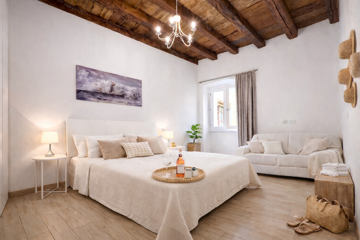 Vēsturiska 100mq māja no 1600. gadiem, kas pilnībā un smalki atjaunota modernā stilā. Mājā ir daudz oriģinālu elementu, sākot no marmoriem, no lielajiem koka franču logiem līdz balkonam ar tipiskām kaltas dzelzs margām, un tā ir pilnībā atjaunota, radot vēstures un modernitātes apvienojumu. Sastāv no ieejas telpas, 2 guļamistabām, vannasistabas un virtuves-dzīvojamās zonas, un katra istaba ir aprīkota ar gaisa kondicionētāju. 2 eiro par personu dienā kā tūrisma nodoklis.