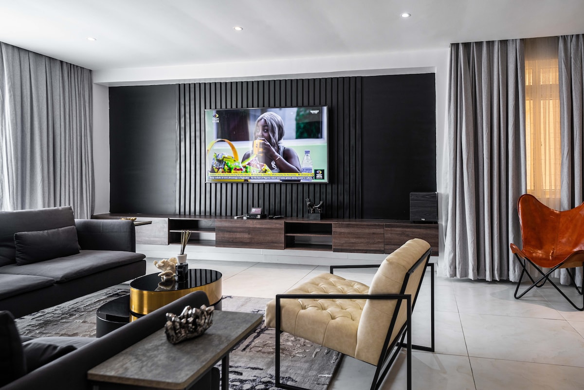 Inspired by NewYork and Dubai High rise Luxury, This 2 bedroom apartment located at the heart of Victoria Island is a first of its kind and offers a unique experience to travelers looking for something different from the norm. With breathtaking water views from the comfort of your room and scintillating magical Ikoyi skyline at night, Your stay in Lagos, Nigeria is poised to be as exciting as ever. amenities like Ps5, swimming pool, tennis court and much more are all at your beckon.
