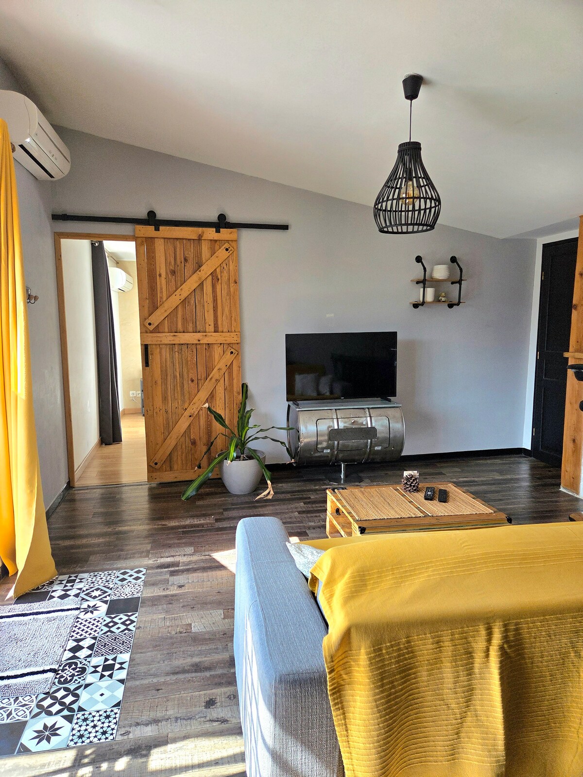 Atpūtieties šajā 30 m2 studijas tipa dzīvoklī ar gaisa kondicionētāju un skatu uz apsildāmu peldbaseinu (no jūnija līdz septembrim), kas atrodas blakus viesu namam (apakšvienības galā), kopīgā ārtelpā (neliela vistas gaļa, bruņurupuči, 2 punduršpicas). Jūsu privātums tiks saglabāts. Studija: dīvāngulta (īsts 140x190 matracis), minivirtuve, ledusskapis, Dolce Gusto, aptumšojoši aizkari. Gultasveļa ir iekļauta. Vannasistaba: duša, apsildāma dvieļu turētājs, tualete. Galda tenisa galds. Lielveikals un aptieka 100 m attālumā.