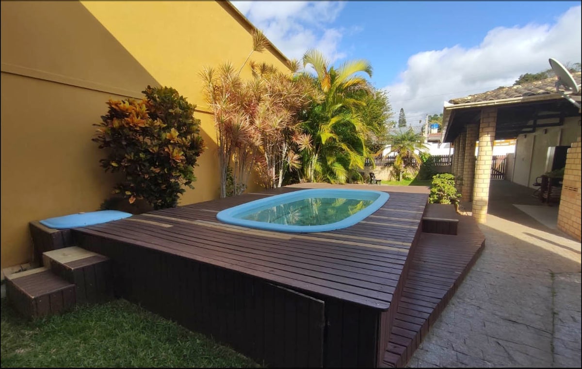 Imbituba/SC. Vienkārša un mājīga māja, kurā jūsu pagalms ir vērsts pret jūru. Liels reljefs ar bocce cancha un arī āra mezonīnu, no kura paveras plašāks skats uz visu pludmali. Virtuvē ir viedtelevīzija, ventilatori un Airfryer Turklāt māja atrodas tajā pašā ielā, kas nodrošina piekļuvi Ribanceiras kāpām (2 minūšu gājiena attālumā). Tāpēc mēs viesiem nodrošinām divus smilšu dēļus. Iespēja vienoties par summām atbilstoši nakšu skaitam.