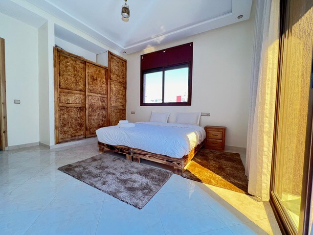 Wavy Days 2 – Your Home on Morocco’s Surf Coast. It’s located in upper Tamraght, a charming Berber and surf village on Morocco’s Atlantic coast, perfectly situated between Aourir and Taghazout. Within a 10–25 minute walk, you’ll find local shops, cafés, restaurants, the beach, and a bus stop. Numerous world-class surf spots are just around the corner and easily accessible by car. Whether you’re a beginner, intermediate, or advanced surfer, there are waves here for every level.