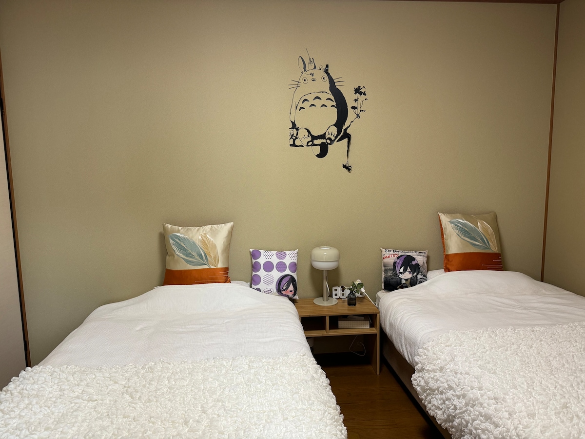 Klusa un mājīga atpūtas iela, JR Sakarai stacija, 2 pieturas līdz lidostai; Outlet, 2020 Hot Springs, viena pietura atpūtai. Mēs piedāvājam 201 istabu, visu privāto bungalo ar jūsu ģimeni, draugiem... pilnībā izbaudiet visu mājīgo privāto telpu.201. istaba atrodas līdz vienģimenes mājokļa āra kāpnēm pirmajā stāvā. Kods ir piekārts pie durvīm. Varat ievadīt, paņemot atslēgu. Standarta gulta 201. istabā ir 1,5 m divvietīgs tatami paklājs bēniņos, un jums ir jākāpj pa koka kāpnēm nokļūt uz bēniņiem. Koka kāpņu nogāze ir nedaudz stāva. Lūdzu, iepriekš sazinieties ar saimnieku, un mēs jums sagatavosim dīvāngultu viesistabā. Piezīme. ⚠️Ja jums viesistabā ir jāizmanto dīvāngulta aptuveni 1,4 m attālumā, lūdzu, iepriekš sazinieties ar mums rezervācijas laikā, mēs sagatavosim jums nepieciešamo gultasveļu. Lielveikali, restorāni, 100 jenu veikali un veikali ir ērti, lai iepirktos un dzīvotu veikalu tuvumā. Viesi, kuri uzturas ilgāk par 15 dienām un uzturas ilgāk par 15 dienām, var baudīt bezmaksas uzņemšanas pakalpojumu lidostā no Naritas lidostas līdzņemšanas pakalpojumam ~ (Ja jums ir jānodrošina transports uz Naritas lidostu vai citām vietām, mēs iekasēsim pakalpojuma nodevu 5000 vai vairāk, lūdzu, apspriediet informāciju ar mani ~)