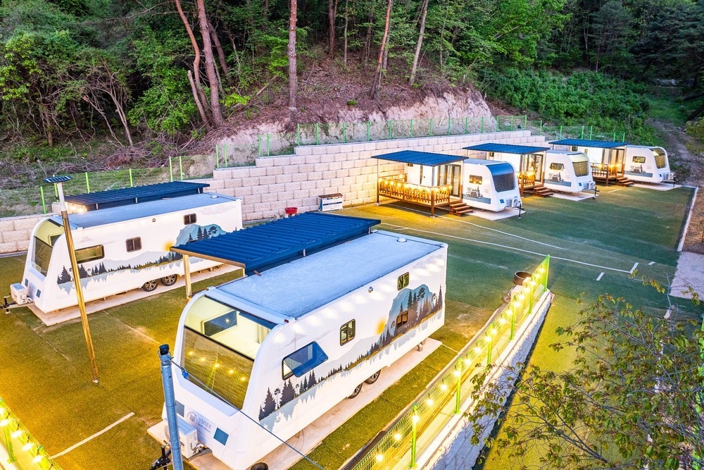 가평에서 즐기는 프라이빗한 카라반 캠핑 프라이빗온수풀카라반2호