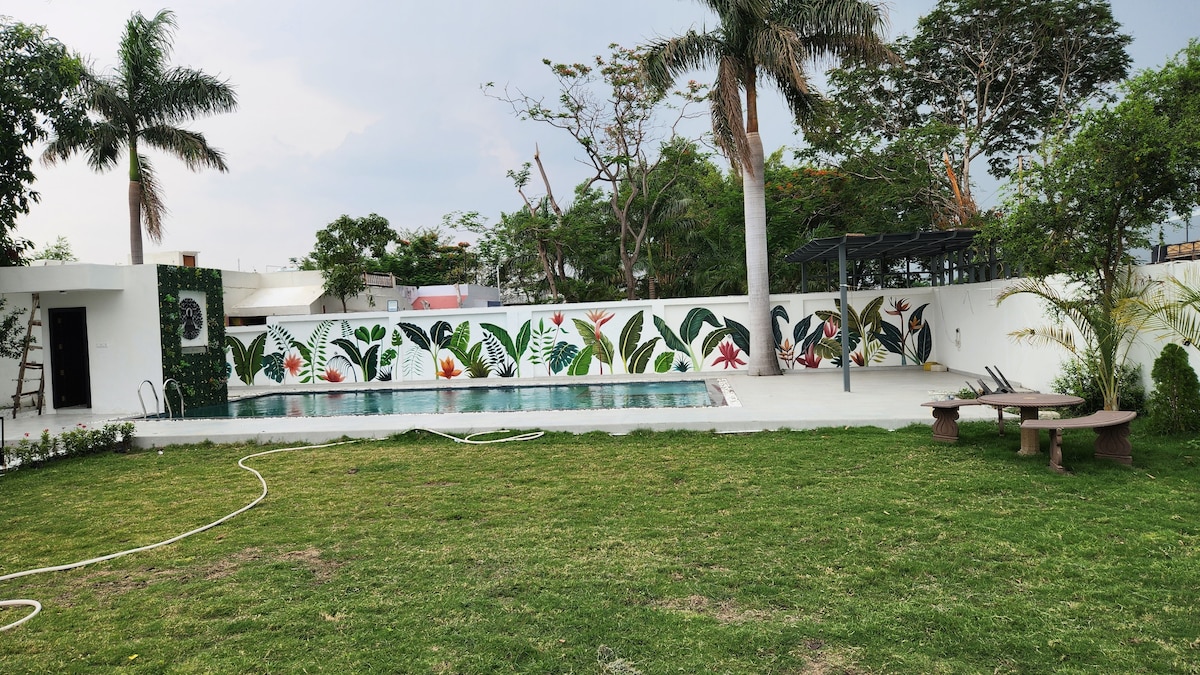 Escape to The 2 Pines – a serene 2-acre urban oasis in Indore. This private farmstay offers two independent bedrooms set among swaying palms and lush gardens, giving you space for both connection and quiet. Start your mornings with birdsong, spend afternoons by the plunge pool or enjoying meals outdoors, and let evenings unfold under a starlit sky — perfect for peaceful getaways or private celebrations. Note: The recreation area (Indoor seating with snooker) will be unavailable on 31 December.