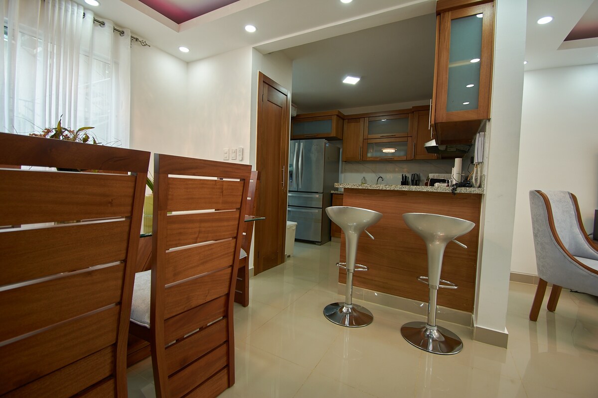 Minimālisma un luksusa, ideāls dzīvoklis visu veidu apmeklējumiem, ceļotājiem, pāriem, vienģimenēm vai pat darījumu braucieniem, jums būs jauka un silta telpa, kur justies kā mājās daudzu sabiedriskā transporta, lielveikalu, restorānu, naktsklubu, cine, Monumento a los Heroes de La Restauracion 7 min, slimnīcas 3 min, lielveikaliem 7 minūšu laikā. Ūdens vieta, kur varētu baudīt lieliskus mirkļus greznā komforta laikā Skaists vestibils, peldbaseins, sporta zāle un Wi-Fi