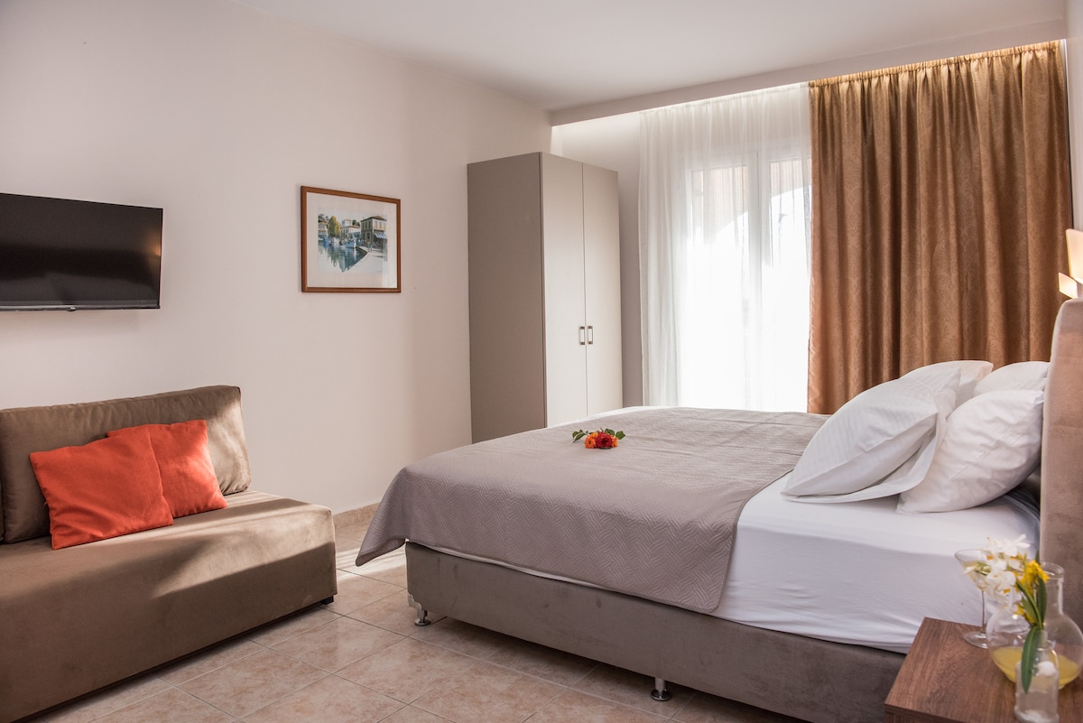 Kapetanios studijas tikai 2 minūšu gājiena attālumā no vienas no lielākajām un lielākajām smilšu pludmalēm salā. Netālu atrodas lielveikals, pludmales bārs, restorāni, bāri un kafejnīcas. Studijas ir aprīkotas. 1-3 personām. Klusa zona. Lieliski piemērota arī ģimenēm. Liels dārzs. Bezmaksas Wi-Fi, gaisa kondicionētājs, liels dārzs un grils.