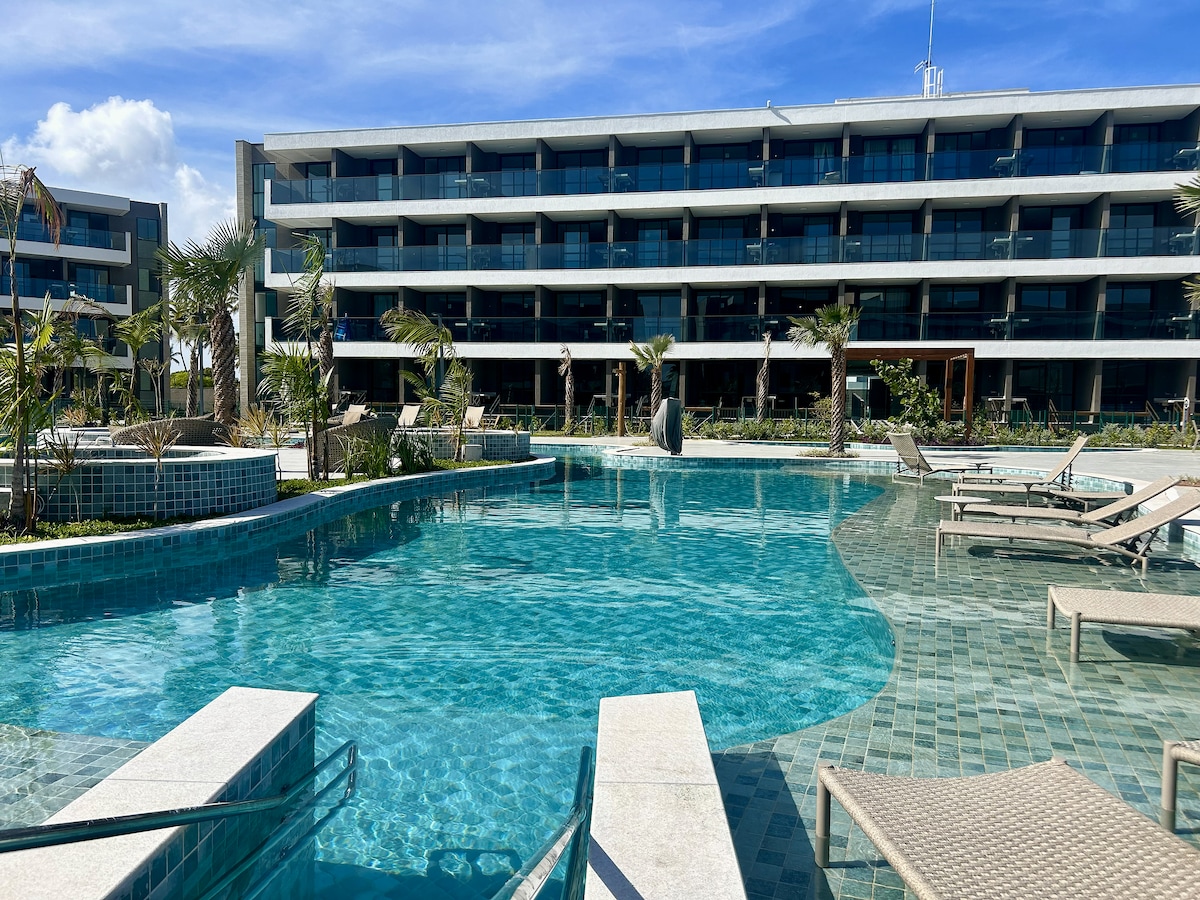 Skaists un mājīgs dzīvoklis dabas paradīzē ar 2 guļamistabām (vienu vannasistabu), divām vannasistabām, viesistabu, minivirtuvi un balkonu. Pilnībā aprīkots un iekārtots izsmalcinātas gaumes viesiem. Tai ir liela konstrukcija, daudzveidīgi baseini (bērnu baseins, pieaugušie, ar raia), sporta zāle, sauna, briquedoteca, rotaļu laukums, spēļu istaba, dažādi korti, ātrās ēdināšanas vieta, privāta piekļuve skaistai pludmalei (pēda smiltīs), pārdomu telpa un daudz dabas