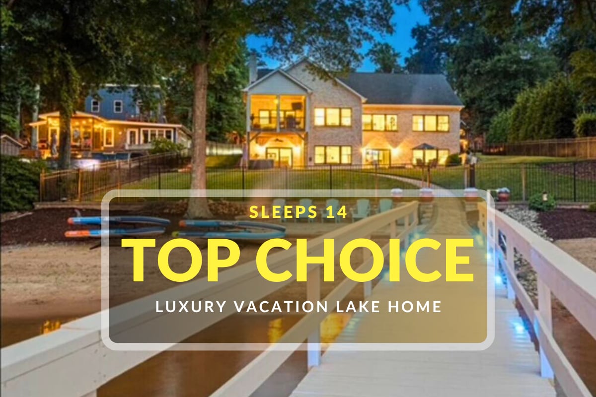 Located directly on Lake Norman, this waterfront retreat offers 3,300 sq ft of comfort for families and groups. Enjoy a private dock with direct lake access, a hot tub, and an outdoor fire pit for evenings by the water. Inside, two full kitchens make meal prep simple, while the game room provides entertainment for all ages. With space for up to 12 guests, it’s ideal for family gatherings and celebrations such as bachelorette parties, birthdays, or baby showers.