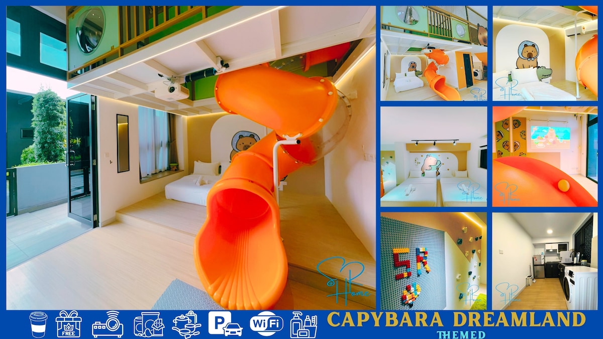 Jautri piepildīta Capybara-Themed Family Unit! Ideāli piemērots ģimenēm ar iekštelpu slidkalniņiem🛝, rotaļīgu🤹🏻♀️🤹🏻 interjeru un mājīgām noskaņām. Izbaudiet piekļuvi baseinam🏊♀️, sporta zālei🏋️, spēļu istabai🎮, KTV🎤, kā arī pamataprīkojumam, piemēram🧴, tualetes piederumiem🧺, veļasmašīnai/žāvētājam un ūdens dozatoram💧. Tuvu populārākajām atrakcijām 🗺️ un ģimenes vietām 🎡 BEZMAKSAS rotaļlietas un neierobežots kafijas ☕ daudzums SR kafejnīcā! Mājoklis, kurā valda jautrība, komforts un paliekošas atmiņas❤️🌈!