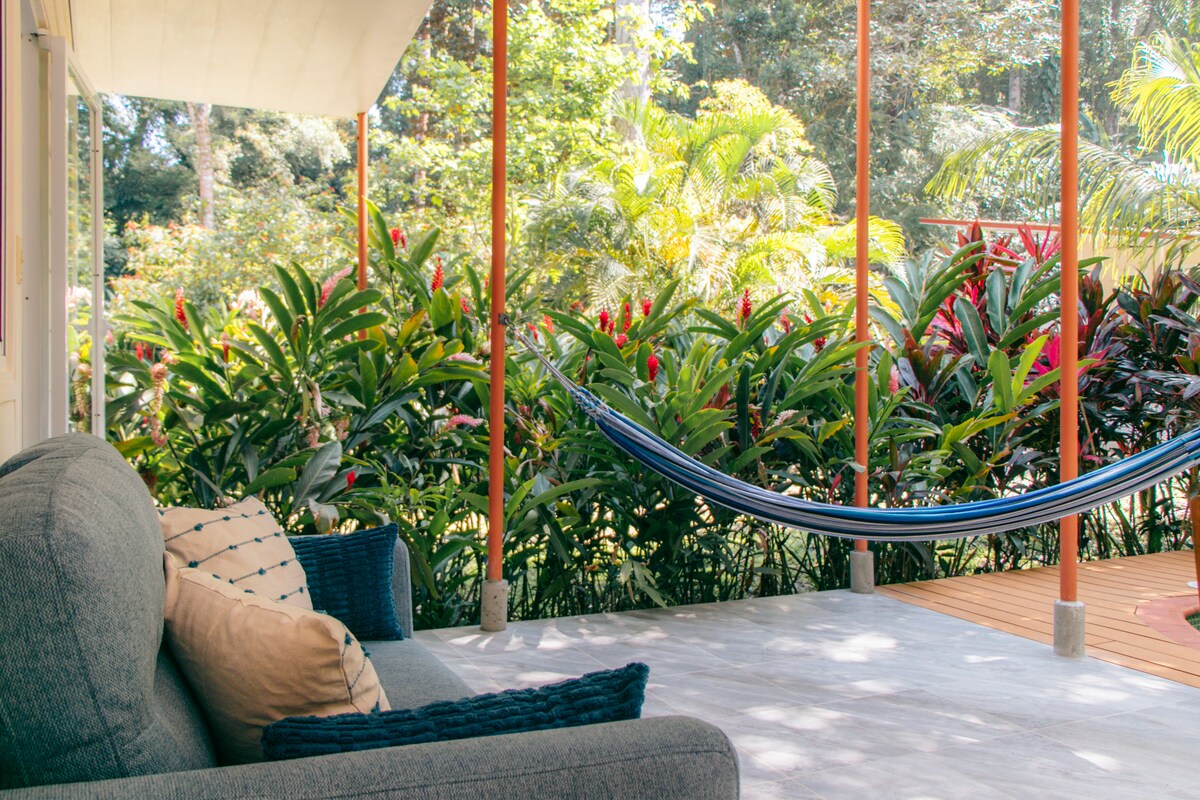 This modern style tiny home is located a beautiful jungle settings. Enjoy monkeys and birds from the comfort of your luxurious king size bed, sofa couch, or twin beds in our vaulted loft viewing and sleeping area. Escape the heat and bugs with our AC cooled indoor area. A screened kitchen with appliances to prepare almost any meal. And a great bathroom with private outdoor shower to truly enjoy nature. We have games, books, and a smart tv to keep you busy on those rainy days. Enjoy!
