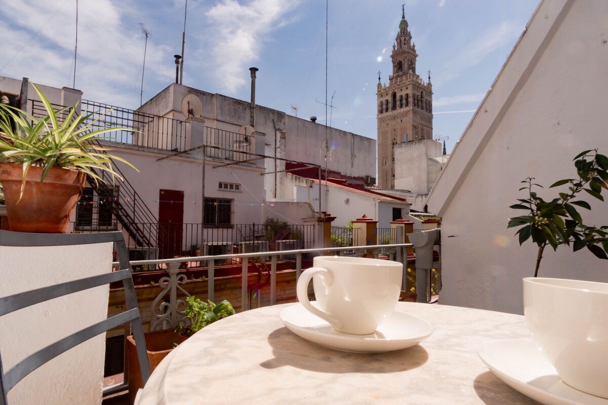 Apburošs penthauss 50 metru attālumā no Seviļas katedrāles. Nakšņojiet vēsturiskajā centrā, no kurienes varat doties pastaigā līdz jebkurai tūrisma un kultūras apskates vietai. Šis skaistais dzīvoklis sastāv no guļamistabas ar divguļamo gultu, no kuras balkona paveras skats uz katedrāli, viesistabas ar dīvāngultu, ēdamistabas, vannasistabas un virtuves, kā arī no glazūras; jaukas terases ar skatu uz turnādi.