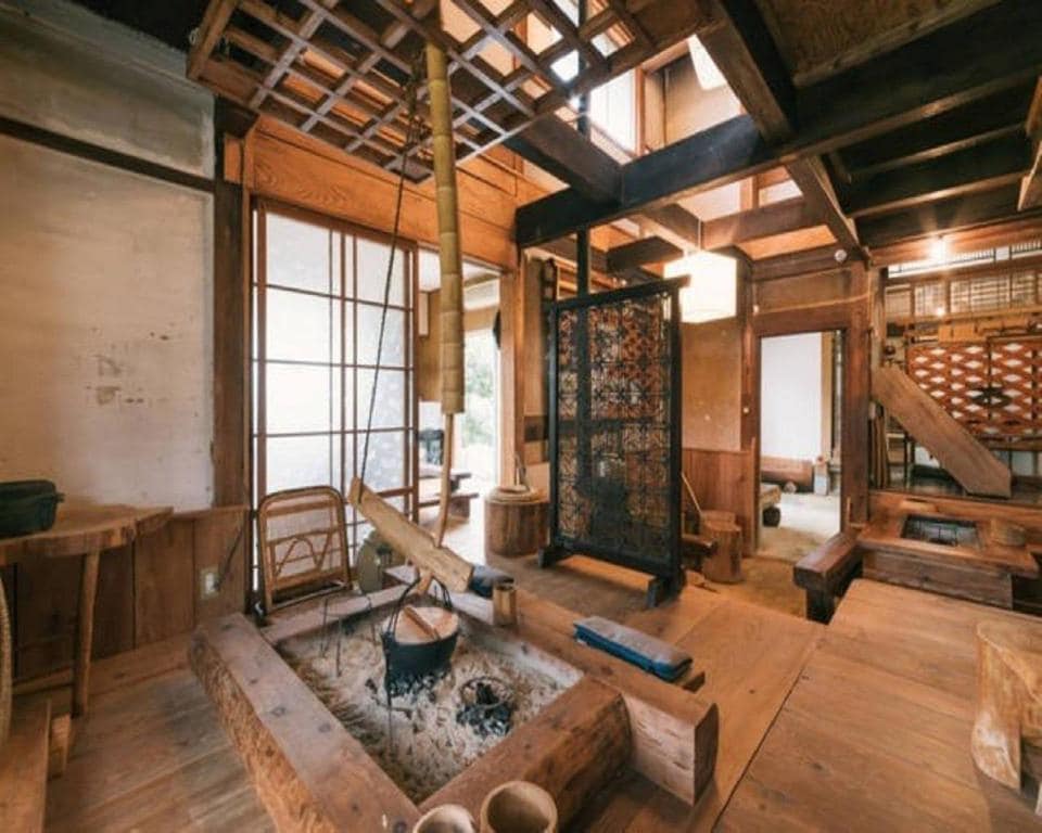 囲炉裏のある築100年の一棟貸し古民家で昔の暮らし体験