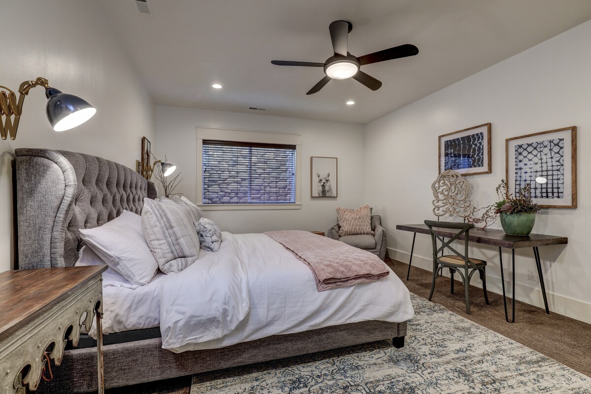 Šī istaba (275 kvadrātpēdas) ar savu privāto ieeju atjaunos jūs, atpūšoties vēl vienai jautrai dienai UT dienvidu apgabalā. Tajā ir ērta Queen izmēra gulta, 42collu plakanā ekrāna televizors,tiešais televizors, Apple TV, privāta vanna, mikroviļņu krāsns un mini ledusskapis. Šī istaba ir ideāla vieta izklaidei un piedzīvojumiem vai vienkārši atpūtai. Atrodas netālu no Sniega kanjona, Rocky Vista universitātes un Tuacahn ar pārgājieniem, riteņbraukšanu, mākslu, Jūtas senioru spēlēm, Svētā Džordža maratonu un Ironman.