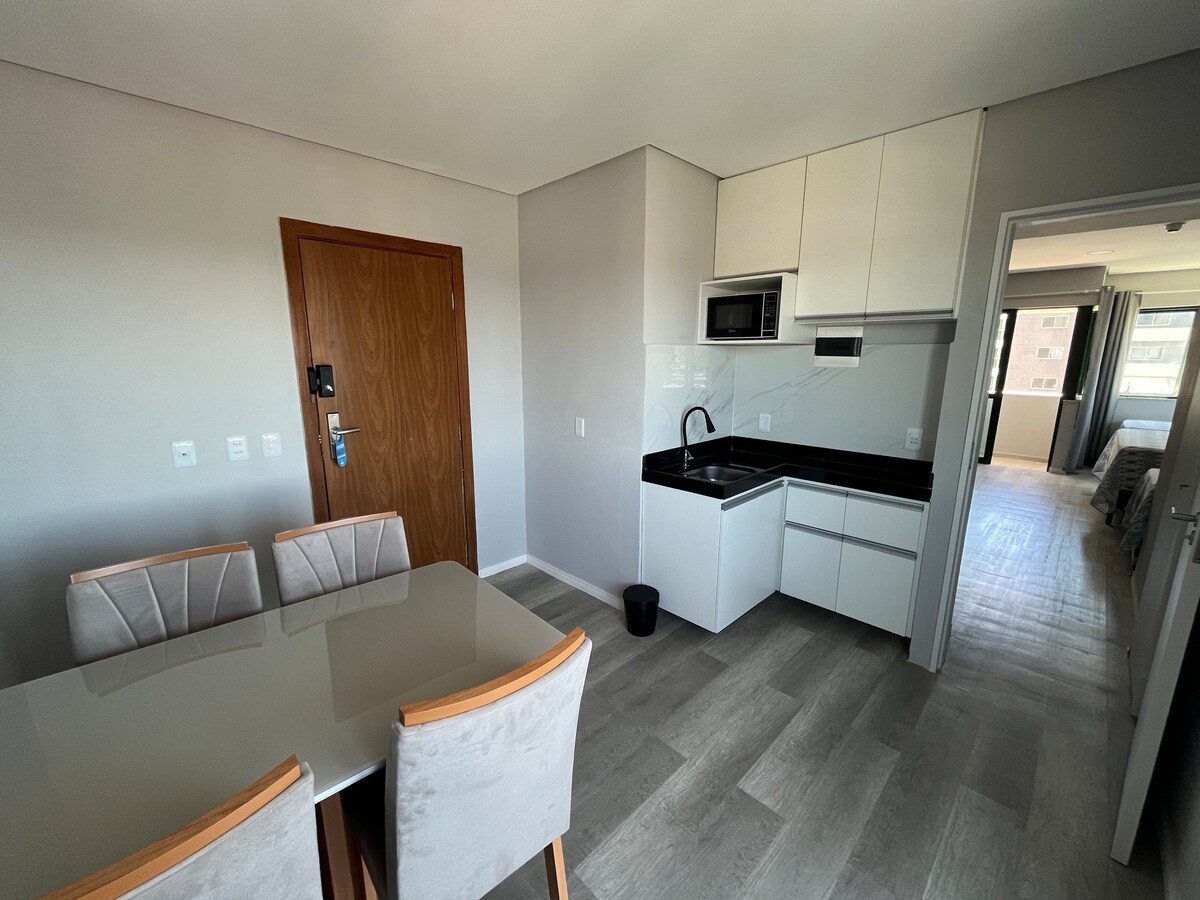 Ideāli piemērots tiem, kas meklē komfortu, atpūtu un praktiskumu. Pilnīga struktūra ar dzīvojamo istabu/integrētu virtuvi, guļamistabu/biroju, plašu vannasistabu un diviem balkoniem ar priviliģētu skatu uz jūru. Unikālas atšķirības jūsu uzturēšanās laikā: Ikdienas uzglabāšana un bezmaksas autostāvvieta Funkcionāla un ērta vide Stratēģiska atrašanās vieta: 6 min no Shopping Guararapes un dažu soļu attālumā no lielveikaliem, bankām, restorāniem, maiznīcām, sporta zālēm un transporta. Nāciet pastaigāties… un jūs vēlēsieties palikt.