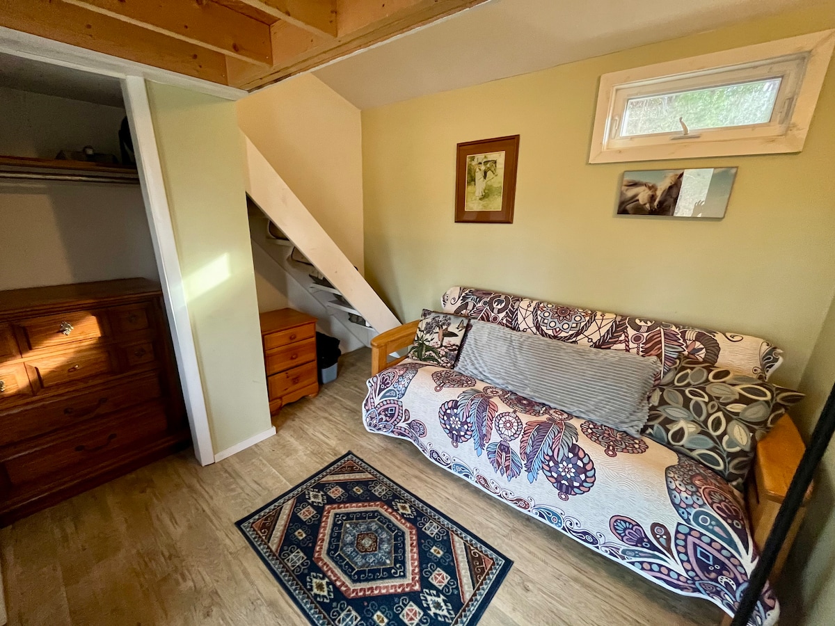 Jūs gaida ekspedīcija Čerokī, NC. Spēlējieties visu dienu un dodieties uz apgleznoto poniju, lai lieliski izgulētos! Šis plašais lofts atrodas virs garāžas ar divām automašīnām. Plaša istaba 4 viesiem ar vienu "queen" izmēra gultu/1 pilna. Minivirtuve ir labi aprīkota ar tostera cepeškrāsni, kafijas kannu, 2 degļu plītiņu, ledusskapi un mikroviļņu krāsni. Minūtes no kazino, teātra un vietējā iepirkšanās. Trofeju foreļu zvejas ūdeņi atrodas pāri ielai. Ieeja Smokey Mountain Parkway atrodas mazāk nekā 5 minūšu attālumā.
