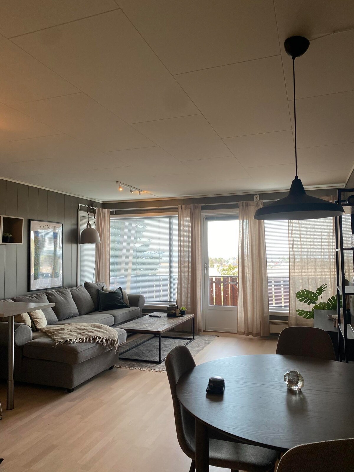 Dzīvoklis 40 kv.m ar virtuvi, viesistabu, vannasistabu un divām guļamistabām, kā arī dīvānu viesistabā . Tajā ir garāža dzīvoklim. Dzīvoklis atrodas veikala un autobusu pieturas tiešā tuvumā. Autobuss aizņem 15 minūtes līdz pilsētai un skrien ik pēc 10 minūtēm sastrēgumstundā. Dzīvoklī ir veranda ar āra mēbelēm + grils, un tas ir pārklāts ar jumtiem. Īss attālums līdz Estendstadmarkai un Ikea, un dzīvoklis ir viegli nokļūt no E6.
