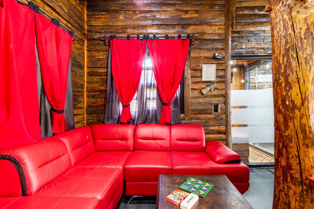Iesaiņots ar koka un akmens detaļām, ir eklektiska lauku un luksusa apdares amalgama, ko mēs vēlamies jums sagādāt šo sajūtu, kurā laikam nav nekādas jēgas! Un vienkārši atpūtieties un aizmirstiet par visu, kas nav svarīgi!!! Ērta gulta, silts burbuļojošs džakuzi, kamīns, un jūs nākat ārā no pirts/tvaika, gatavs baudīt skatu no balkona blakus savam partnerim un glāze vīna! Smēķēšana namiņā ir aizliegta!