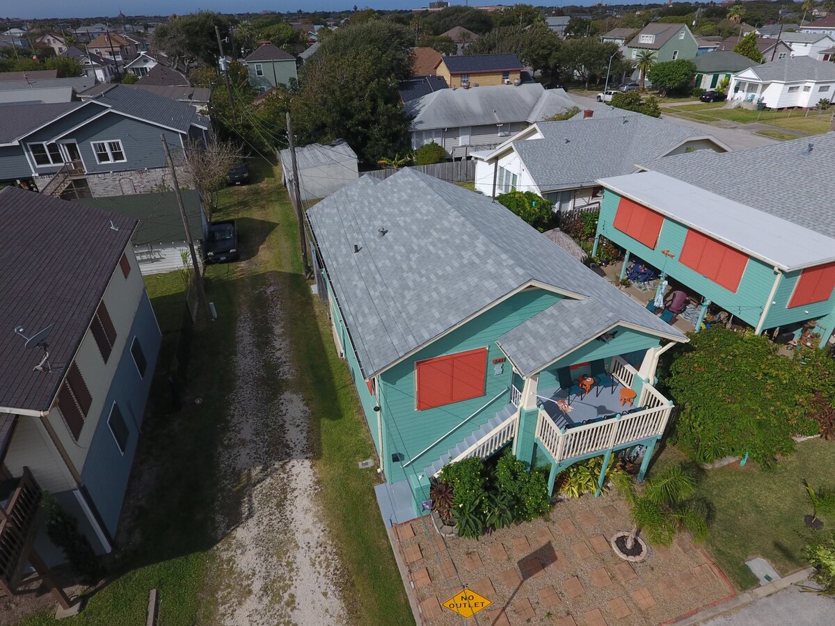 Burvīga 2 guļamistabu 1 vannasistabas kotedža 3 kvartālu attālumā no pludmales un tikai dažu minūšu attālumā no vairākām Galvestonas apskates vietām, tostarp Galvestonas salas vēsturiskā prieka piestātne, Schlitterbahn ūdens parks, Moody Gardens un daudz kas cits! Šī nesen atjaunotā 1923. gada amatnieku stila kotedža būtu lieliski piemērota romantiskai nedēļas nogalei vai ģimenes atpūtai! Ērtībās ietilpst: burbuļvanna, gāzes grils, Keurig, pilnībā aprīkota virtuve, veļas mazgājamā mašīna/žāvētājs un trauku mazgājamā mašīna.