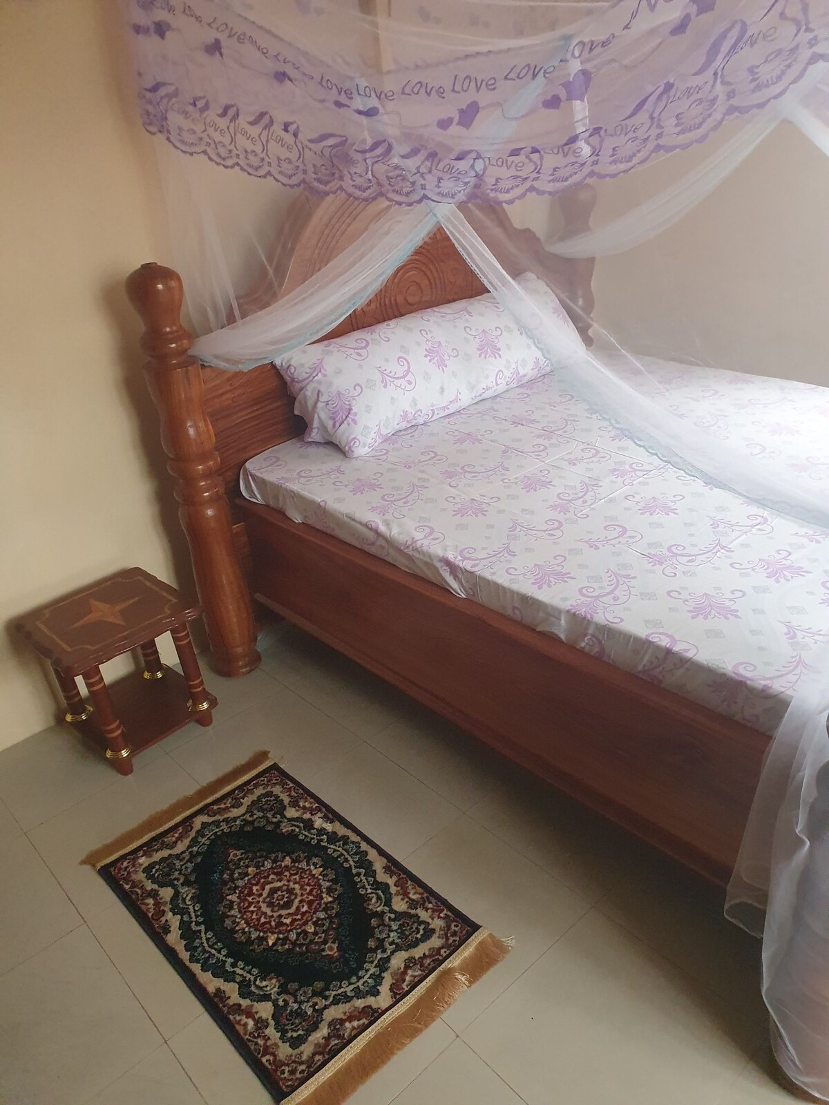 Mūsu jaunuzceltais Furaha namiņš atrodas tieši balto smilšu pludmalē Džambiani Zanzibārā. Piedāvājam 4 divvietīgas istabas, kas aprīkotas ar lielu divguļamo gultu ar moskītu tīklu un griestu ventilatoru. Virtuve, ēdamistaba un 1 vannasistaba katrā stāvā ir kopīga. Mūsu namiņa akcents ir balkons ar skatu uz jūru, ko var baudīt mājīgajās sauļošanās gultās. Liels dārzs arī aicina jūs atpūsties un baudīt prieku. Ir pieejamas gardas brokastis.