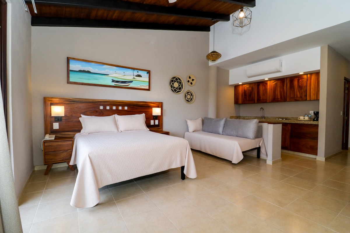 Šie uz ielas vērsti numuri ar King izmēra gultu ir aprīkoti ar LED VIEDTELEVĪZIJU un klēpjdatoriem piemērotu darba vietu, Wi-Fi, USB portiem un kontaktligzdām, kā arī karstām dušām. Mūsu īpašumā ir efektīvas viesu istabas, kurās galvenā uzmanība tiek pievērsta viesu atpūtas koplietošanas telpām. Komplektā ietilpst dvieļi un gultasveļa, gaisa kondicionieris, putu matrača virsmatracis un bezmaksas Cowork Hot Desk izmantošana. Mikroviļņu krāsns un bezmaksas rīta kafija viesnīcas vestibilā. Mini-fridges 50 peso/dienā pēc pieprasījuma