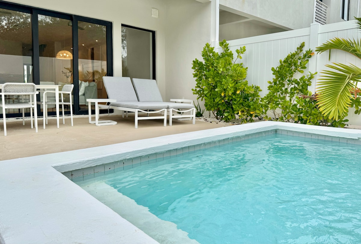 "Sandbox Studio", kas atrodas nomaļā pludmalē, kā norāda nosaukums, ir studijas tipa dzīvoklis ar privātu ekranizētu verandu tikai dažu soļu attālumā no kristāldzidra ūdens un neskartām baltām smiltīm. Šis gleznainais dzīvoklis atrodas slēgtā kopienā un ir nesen atjaunots, iekļaujot visu, lai padarītu jūsu uzturēšanos ērtu, tostarp veļasmašīnu/žāvētāju, ēdiena gatavošanas ierīces un Wi-Fi. Iekļauti pludmales krēsli, dvieļi, snorkelēšanas piederumi, kajaks un divi airu dēļi.
