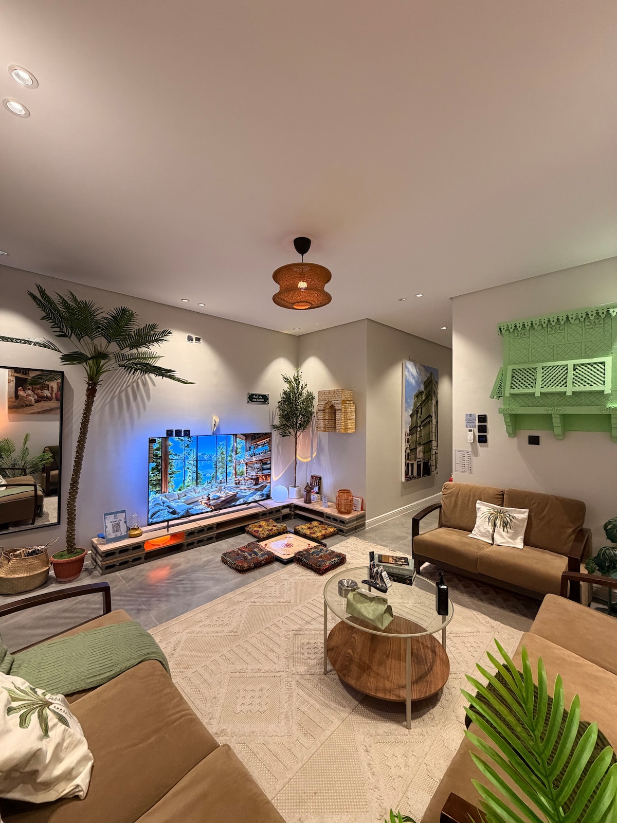 Šī privātā rezidence atrodas netālu no visa, atrodas Al-Rawdha apkaimē un ir viena no dinamiskākajām vietām Džidā ar panorāmas skatu uz ielu, kas ir ideāla vieta pilsētas iepazīšanai 🌃 Laipni lūdzam jūsu mājoklī , Dzīvoklī ir guļamistaba un viesistaba ar atvērtu virtuvi, ērts dīvāns, kurā var uzturēties divi cilvēki, un 75 collu 4K viedtelevīzija, un tajā ir liela, ērta gulta ar viesnīcas kvalitāti jaukam miegam. Ir pieejams apkalpošanas galds, kas aprīkots ar tējkannu, mikroviļņu krāsni un mini ledusskapi Jūsu veselībai un drošībai dzīvoklis ir profesionāli uzkopts un sanitāri apstrādāts. Izbaudiet uzturēšanos,