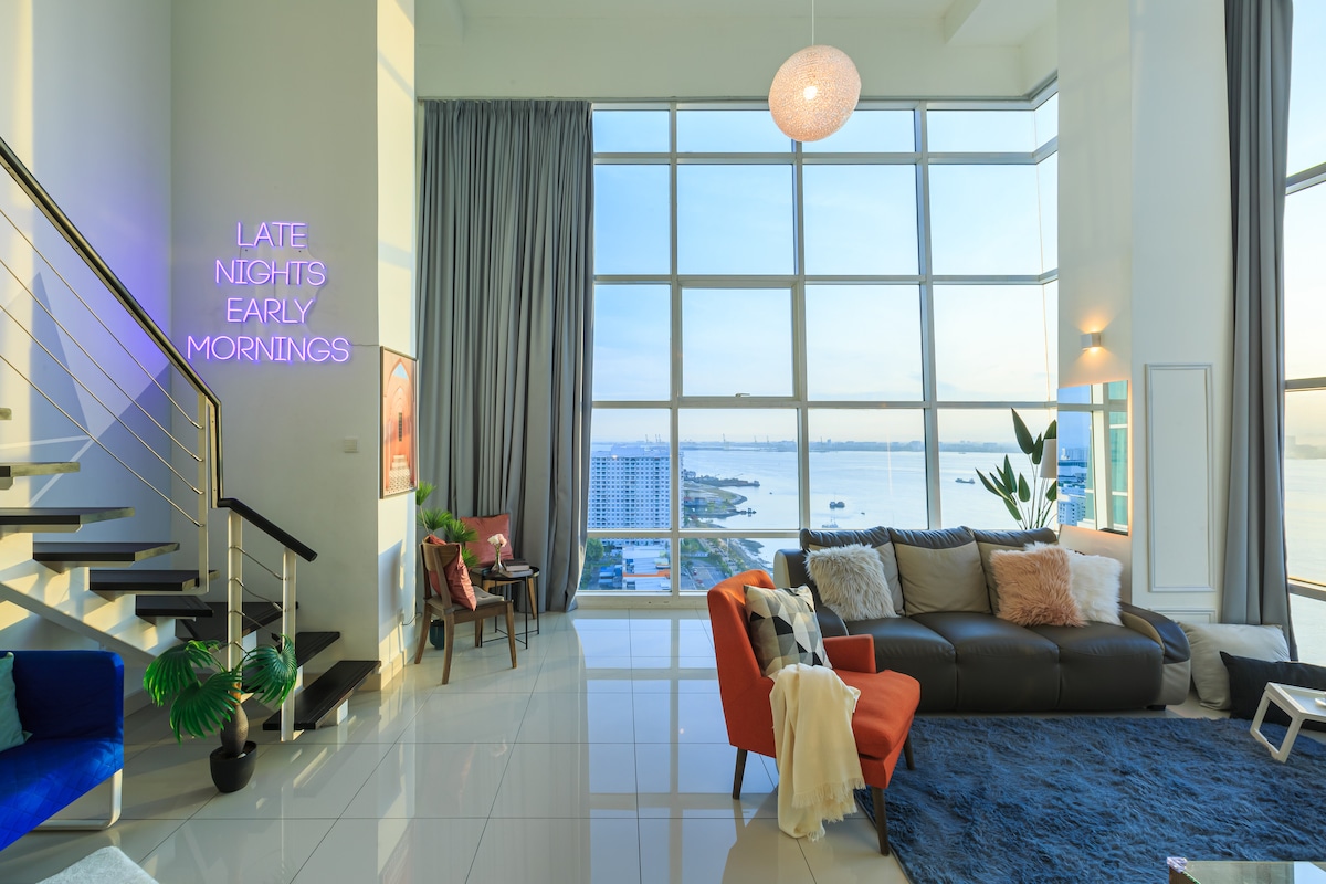 Wake up to breathtaking SEA VIEW at Maritime Suite, Georgetown. Located right beside the scenic waterfront promenade, this modern sea view home offers one of Penang’s most desirable locations. Enjoy EATERIES, CAFES, CONVENIENCE STORES, SALONS and shops just downstairs, or unwind indoors with our extensive in-house entertainment after a day out! Ideal for gatherings, families, and groups seeking a sea view Airbnb in Georgetown with unbeatable CONVENIENCE, COMFORT, AND FUN — ALL IN ONE PLACE!