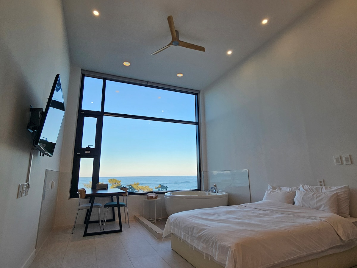 Man patika Austrumjūra, tāpēc es dotos prom, kad vien man būtu iespēja. Es gribēju dzert kafiju, skatoties uz jūru no istabas. (Saskaņā ar Airbnb politiku no 2026. gada rezervācijas netiks pieņemtas, tāpēc, lūdzu, izmantojiet īstermiņa īres vietni Revea.) Tad es iepazinu Mukho jūru. Kamēr es jutos vīlies Sokčho komercializācijā un Gangnunas pludmales monotonijā, Mukho jūra, kuru satiku kā liktenis, bija kā no jauna atklāta pērle. Vērojot rīta sauli, kas rītausmā ielūst pa logu, Man patika zvejas laivu gaismas, kas nakts vidū spīdēja uz tumšās jūras, bet man patika Mukho bākas ceļš, pa kuru varat pastaigāties gar Mukho jūru, un Mukho cilvēki Gangwon-do, kuri ir draudzīgi. Es domāju, ka varētu dalīties ar studiju, ko nopirku, lai baudītu vienatnē ar citiem. Studio Mukho Sea ir telpa, kas apvieno viesnīcas un māju komfortu, izmantojot pieredzi, kas gūta, uzturoties Airbnb mājokļos un viesnīcās daudzās valstīs.