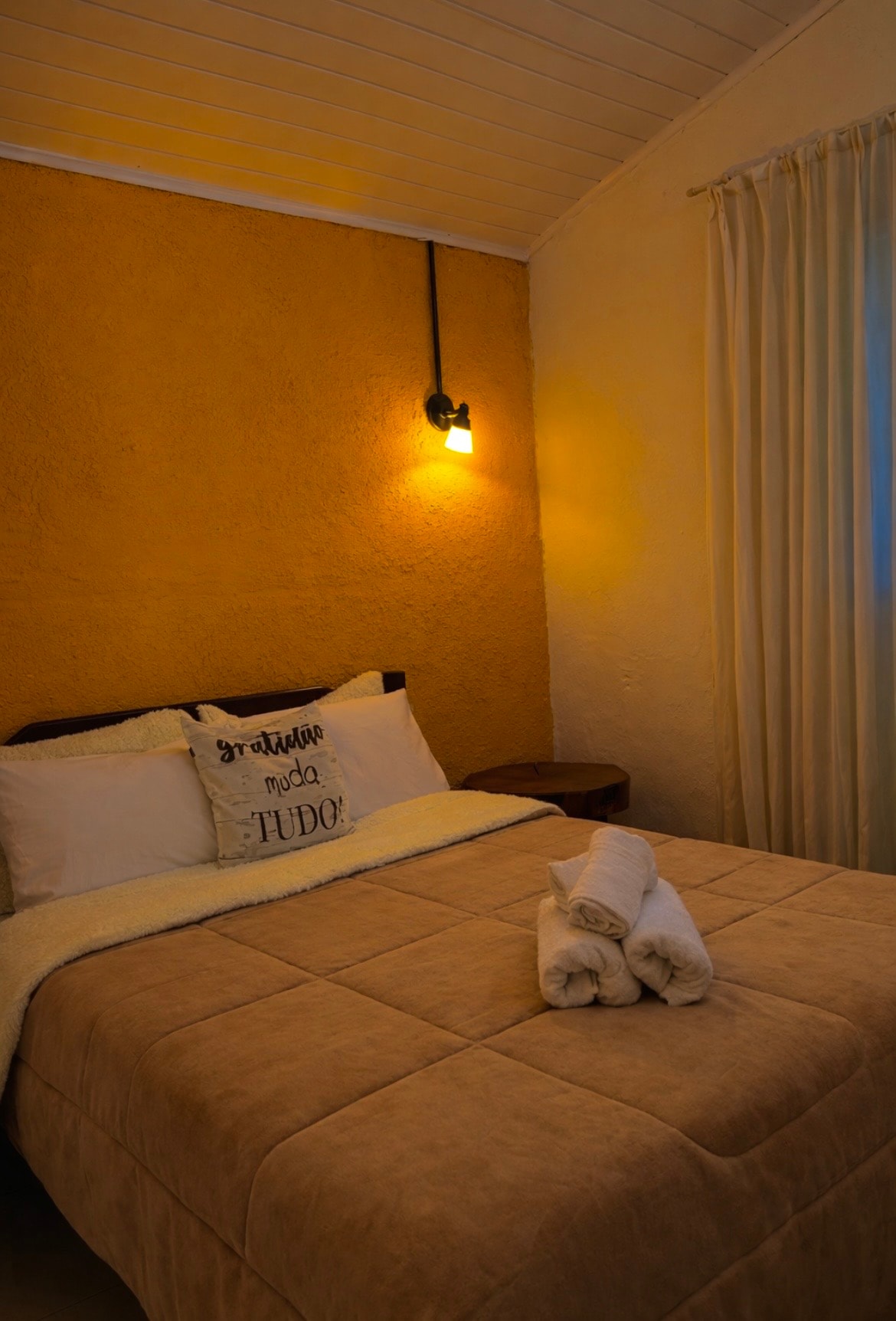 Aizbēdziet no ikdienas un izbaudiet mājīgu kalnu namiņu Joanópolis SP, netālu no slavenā Salto ūdenskrituma, Extrema MG. Mūsu 25 kvadrātmetru kalnu namiņš ir ideāli piemērots pāriem un ģimenei ar līdz 4 cilvēkiem. Istabā ir privāta vannasistaba, gulta un virtuve maltīšu pagatavošanai. Kalnu namiņa privileģētā atrašanās vieta atrodas 4 km attālumā no pilsētas centra, 8 km attālumā no Salto ūdenskrituma Extrema MG un 20 km attālumā no Pretos ūdenskrituma Joanópolis SP.