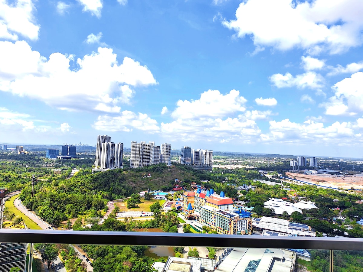 Hi, Welcome to “Iskandar Residence Stylish 3bed Pool Resort Home”! ※ Fantastic Night View ※ 3mins drive to Lego Land, Puteri Harbour, Gleneagles Medini ※ 5 mins drive to Sunway Big Box| X park ※ 8 mins drive to Educity Iskandar Medini ※ 40th Floor Panaroma View Medini ※ Resort Style facilities sauna, jacuzzi, gym, squash, pool etc. ※ Unlimited Wi-fi Streaming ※ Full Kitchen Utensils Enjoy your holiday or experience a great stay with us now