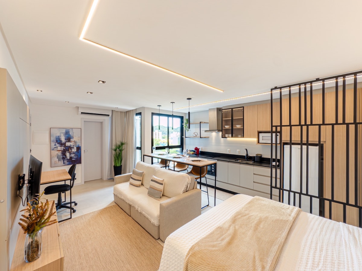 Studio Premium com piscina, garagem e academia.