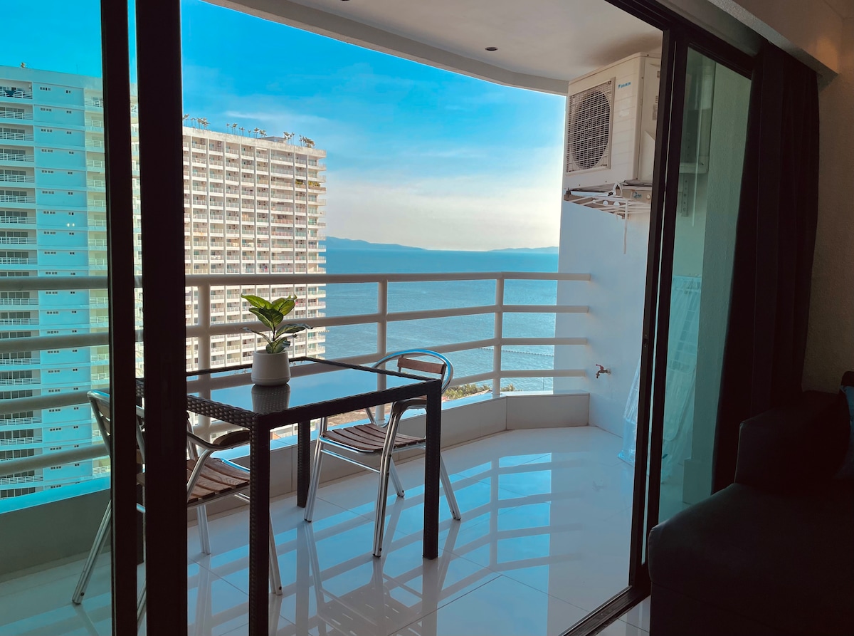 Pattaya SeaView芭提雅海滩2Rooms全家亲子爱侣180度高层正海景公寓零距离住在海里