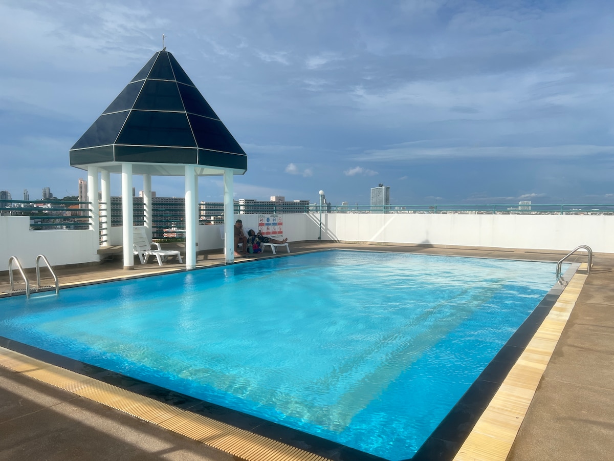Kvalitatīvs dzīvoklis Pataijā / Iepazīstieties ar Taizemes lēno dzīvesveidu - atpūtieties brīvdienās, pastaigājoties līdz pludmalei - iespējama mēneša atlaide / 711 / iepirkšanās iela / baseins