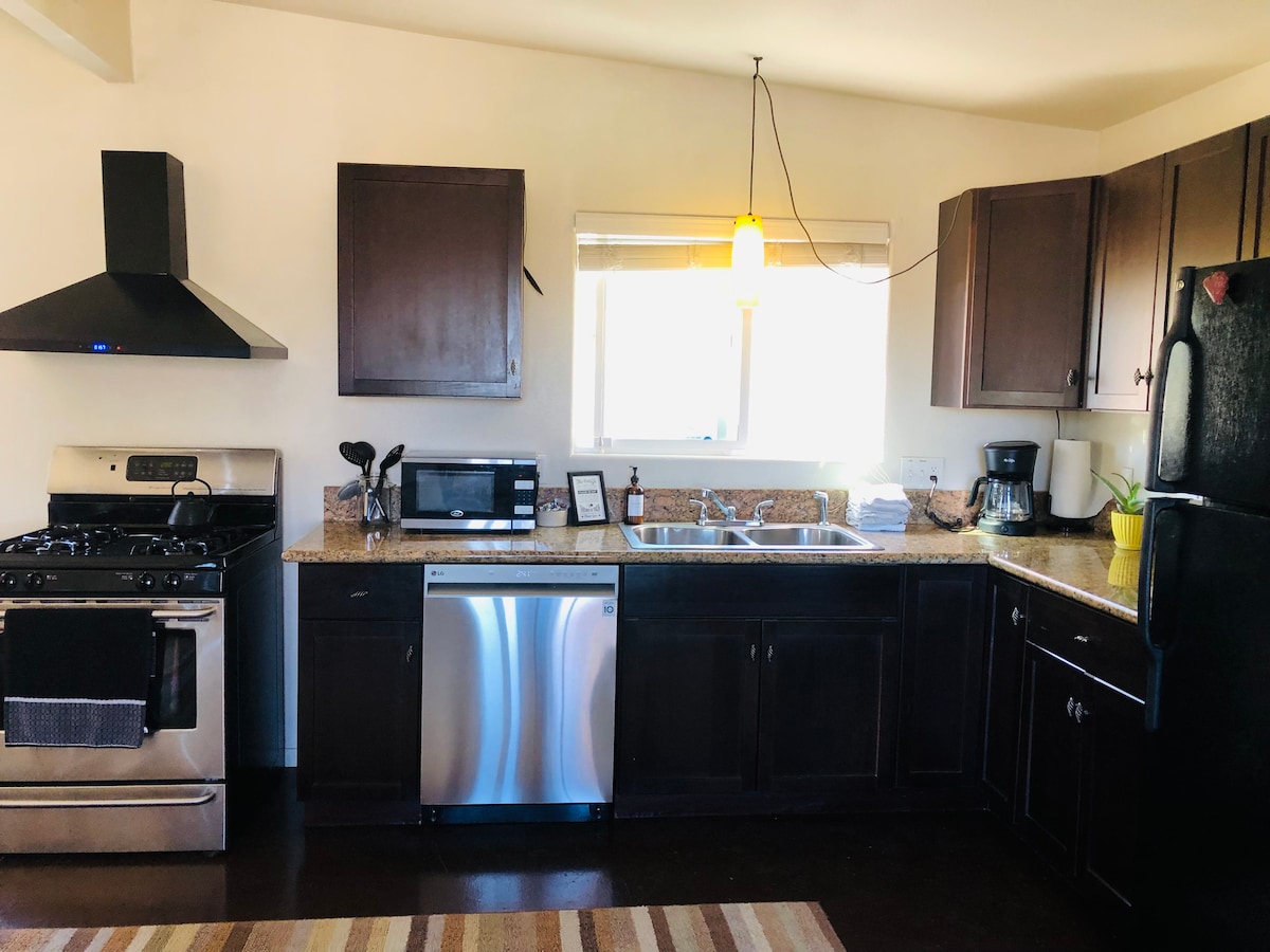 Dizaina apzināta atpūta ar skatu uz kalniem! >>šī ir vieta, kas godina, veido + funkciju vienlīdzīgi ar cietu misiņa stiprinājumu, vara bartopu, traipu betona grīdām un vintage kokvilnas gultasveļu. Mūsdienīgi + vintage elementi apvienojas, lai veidotu atpūtas, pārdomu un radošas plūsmas telpu. Privāta telpa ārpus telpām ar gāzes ugunskura vietu un grilu. Vieglas pastaigas attālumā no Noah Purifoys Āra mākslas muzeja. 8 minūšu brauciena attālumā no pilsētas centra, 15 minūšu attālumā no parka. Mūsu modernā svētnīca ir ideāli piemērota mākslinieciski domājošai dvēselei.