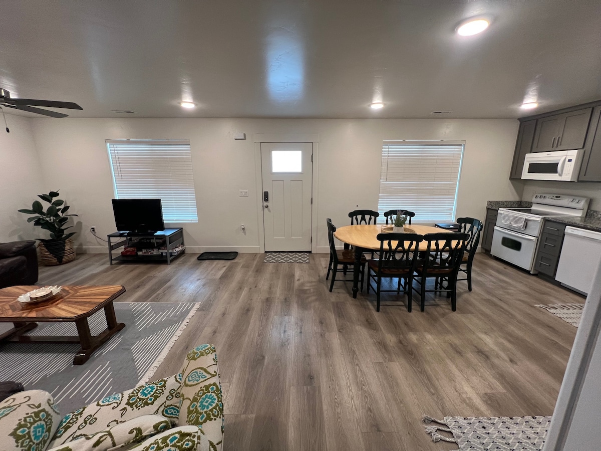 Only 5 minutes off I-15, our unit offers a perfect scenic location! Our spacious bnb (720 square feet) is super clean with a "fresh" feeling. The kitchen is large and well equipped so you might opt to prepare meals right here. The bathroom has recently been remodeled and the king size bed offers a comfortable night's sleep. Outdoors we offer a bbq and patio furniture for sitting outside and enjoying the mountain air. Just a 5 minute walk and you'll be in Santaquin canyon.